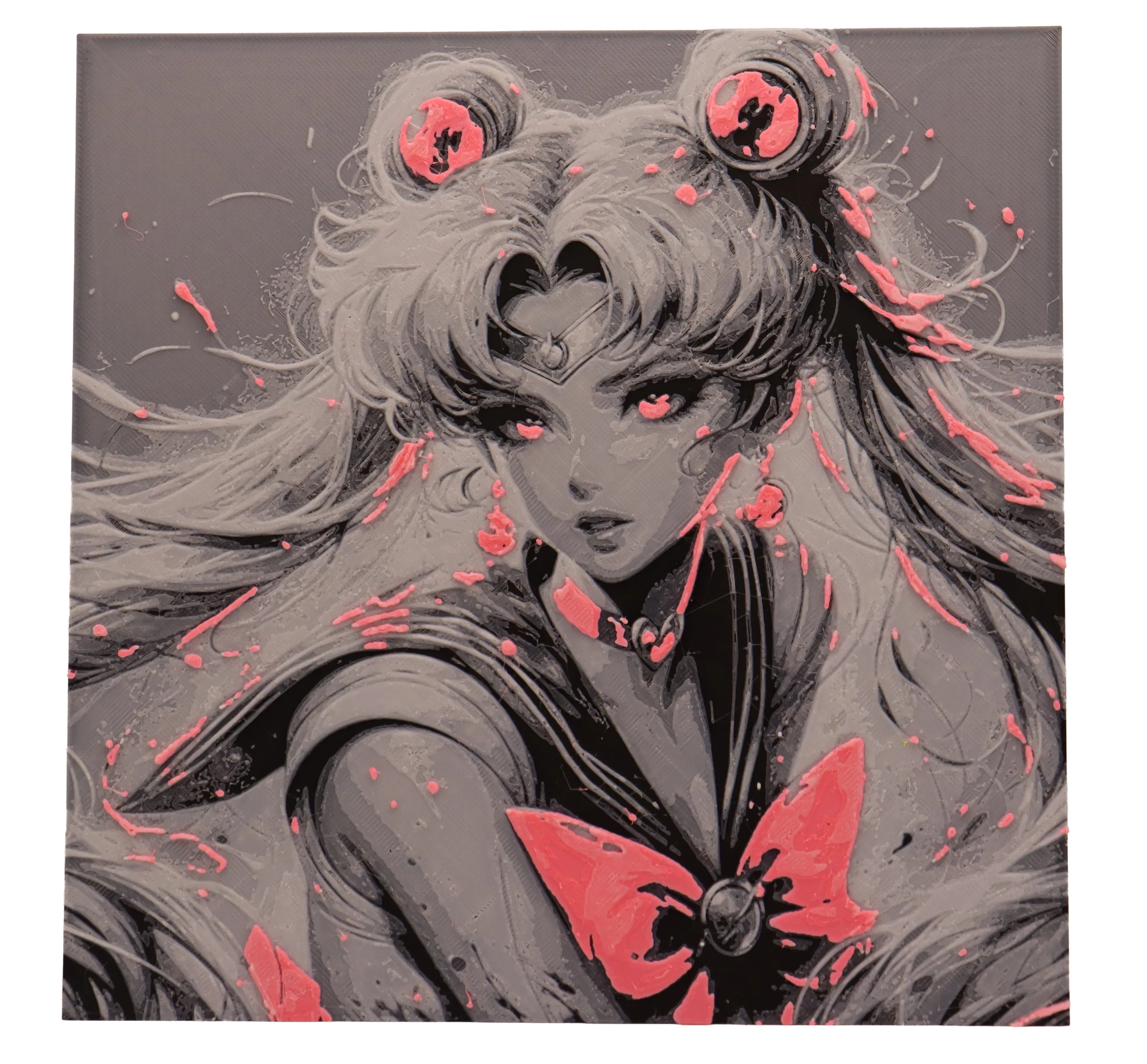 Imprimée en 3D multicouche selon la technique officielle Hueforge, cette création met à l’honneur Usagi Tsukino, héroïne emblématique du manga culte, symbole d’amour, de justice et de lumière.