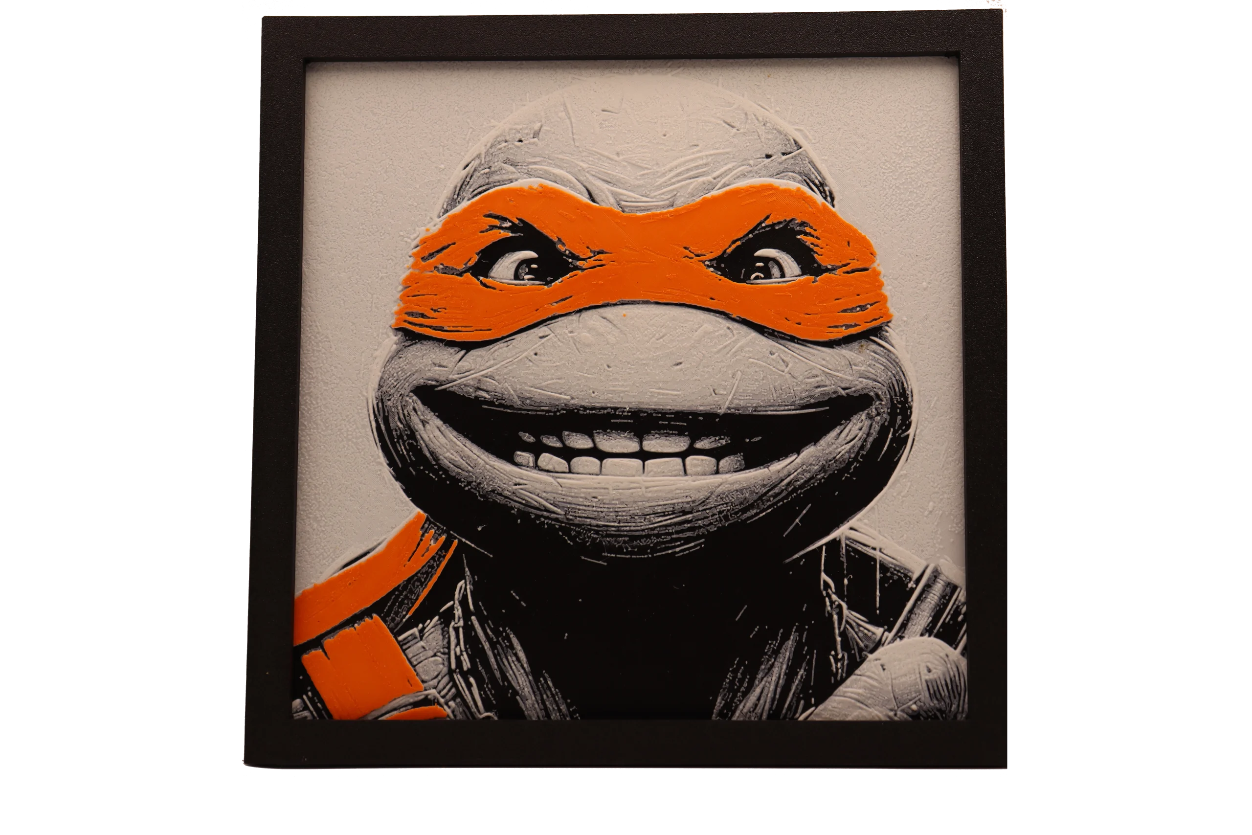 Apportez une touche de fun et de bonne humeur avec ce Hueforge 3D dédié à Michelangelo, la tortue orange la plus détendue et joyeuse du groupe 🍕😄.